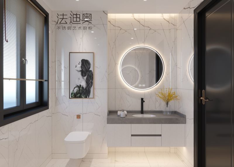 Esta vaidade de banheiro é apresentada como um sistema orientado pelo design em vez de um SKU genérico.Ele usa branco / preto juntamente com estrutura de gabinete de aço inoxidável para criar uma identidade visual mais resolvida para projetos residenciais premium.