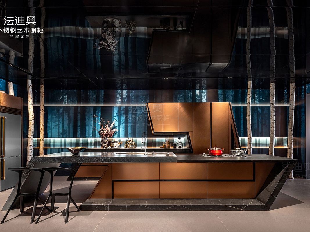 Este armário de cozinha personalizado é construído em torno de uma estratégia de acabamento diferenciada: Ouro Rosa combinado com estrutura de armário em Aço Inoxidável. Essa combinação oferece aos compradores uma expressão de luxo mais quente sem perder a facilidade de limpeza e a durabilidade do projeto esperadas de armários de aço inoxidável.