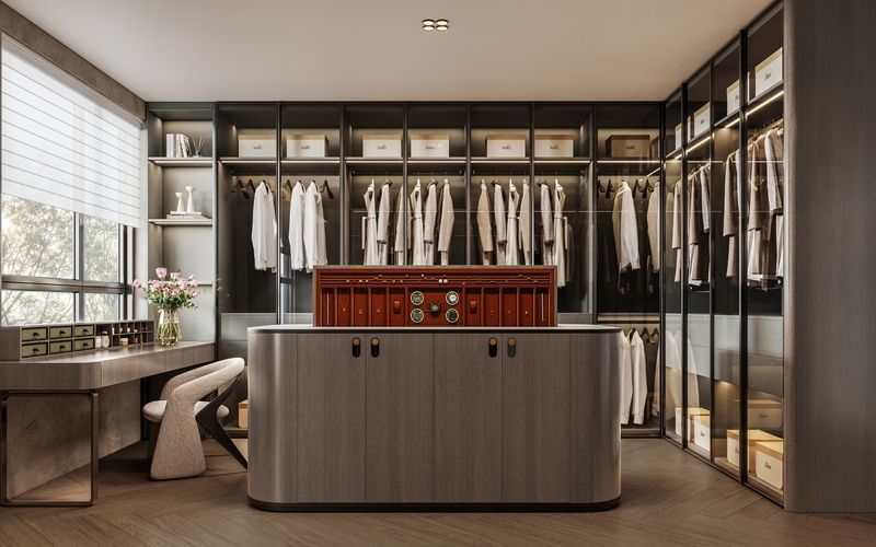Ele também combina o layout em forma de L com barras penduradas, gavetas e prateleiras para uma organização eficiente, ajudando os compradores a julgar se a história final, integração de aparelhos,e o planeamento da utilização diária podem permanecer alinhados num único sistema.