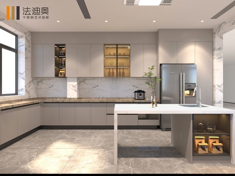 | P: Por que este Armário de Cozinha em Aço Inoxidável em Forma de U Elegância Moderna combina cinza com estrutura de aço inoxidável? O valor é que o cinza confere ao projeto uma identidade visual mais quente e residencial, enquanto a estrutura do armário em aço inoxidável mantém o sistema de armários fácil de manter e mais credível para uso a longo prazo. |