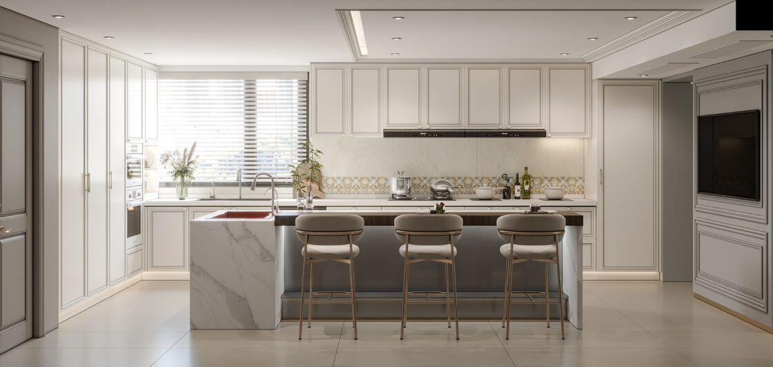 | Hardware e acessórios | Chaves ocultas de alta qualidade, sistemas de gavetas de extensão completa e alças integradas garantem uma operação suave |
