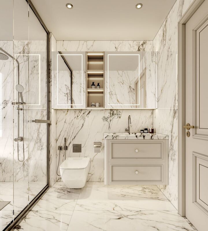 | Projeto estrutural | A vaidade flutuante montada na parede aumenta a leveza visual, simplificando a limpeza e manutenção do chão. |