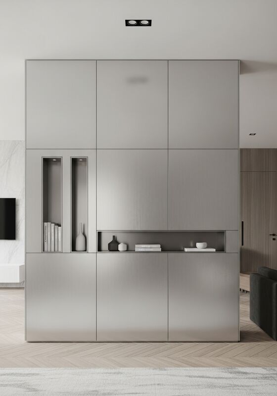 | Q: Can the finish of the Luminous Pearl Mirror-Finish Wall System in 304 Stainless Steel be matched to other Fadior systems? Yes. Fadior can coordinate finish direction, color temperature, and hardware language across related kitchen, wardrobe, vanity, or balcony programs. For dealers and designers, that makes it easier to build one coherent whole-home specification instead of treating each room as an isolated package. |