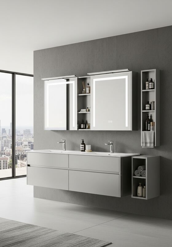 | Uso | Toucadores de banheiro principal em apartamentos urbanos, conversões de loft, projetos residenciais de estilo industrial e espaços de hospitalidade projetados por arquitetos que exigem armazenamento durável, higiênico e visualmente contido |